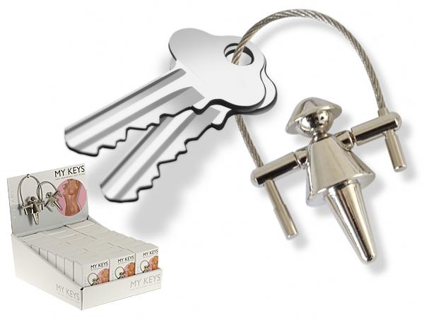 Sjov og anvendelig nøglering med kvindefigur.Let at åbne og lukke ved at skrue på de små endestykker.Rustfrit stål.7×4 cm. (Læs mere)